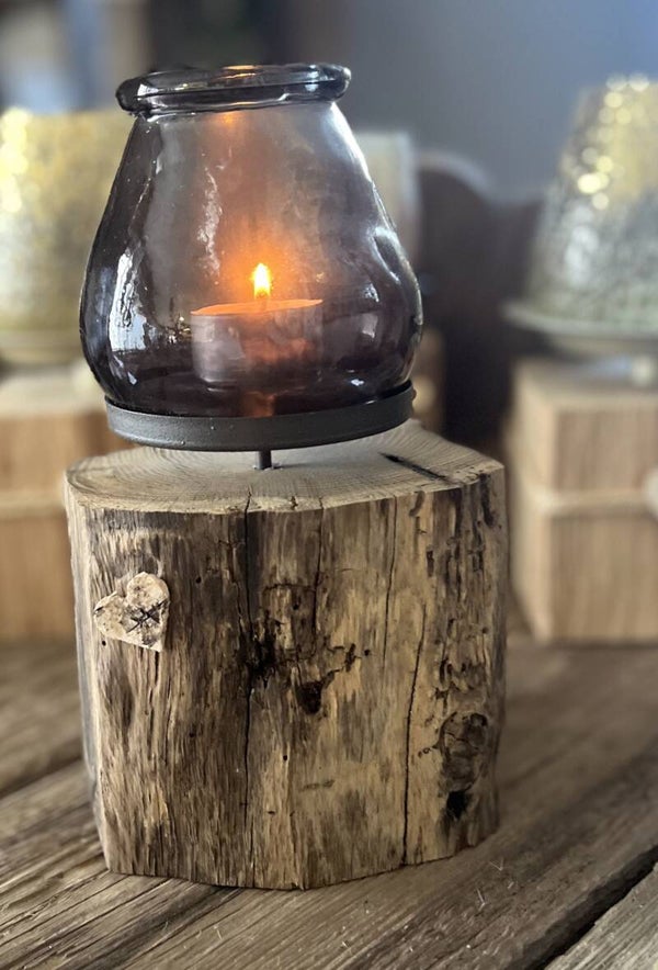 Was altes`Neues` ist dieses rustikale Stück Altholz in Verbindung mit einem Winslicht.