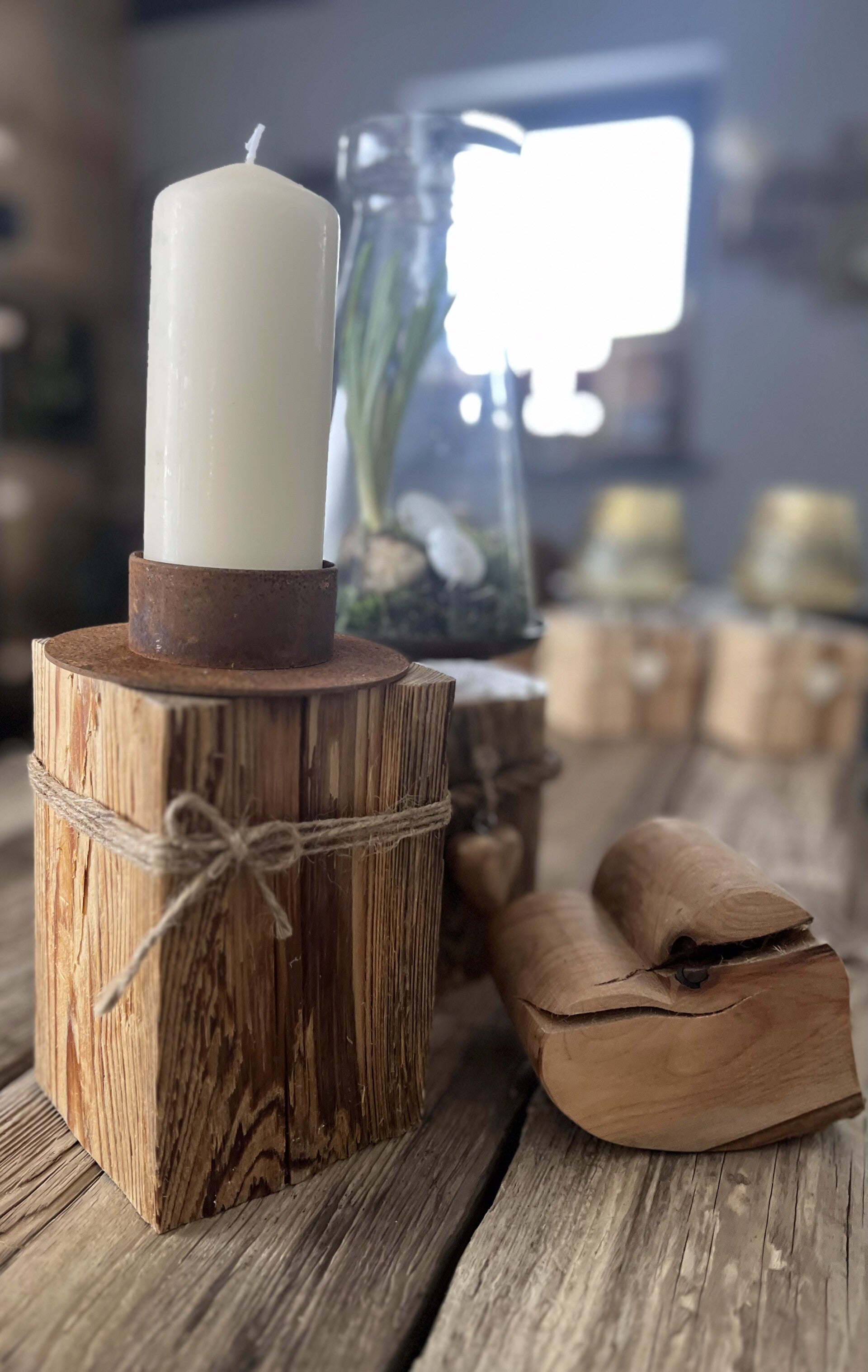 Unser rustikaler Kerzenhalter- der perfekte Mix aus Vintage Charme und warmer Atmosphäre.