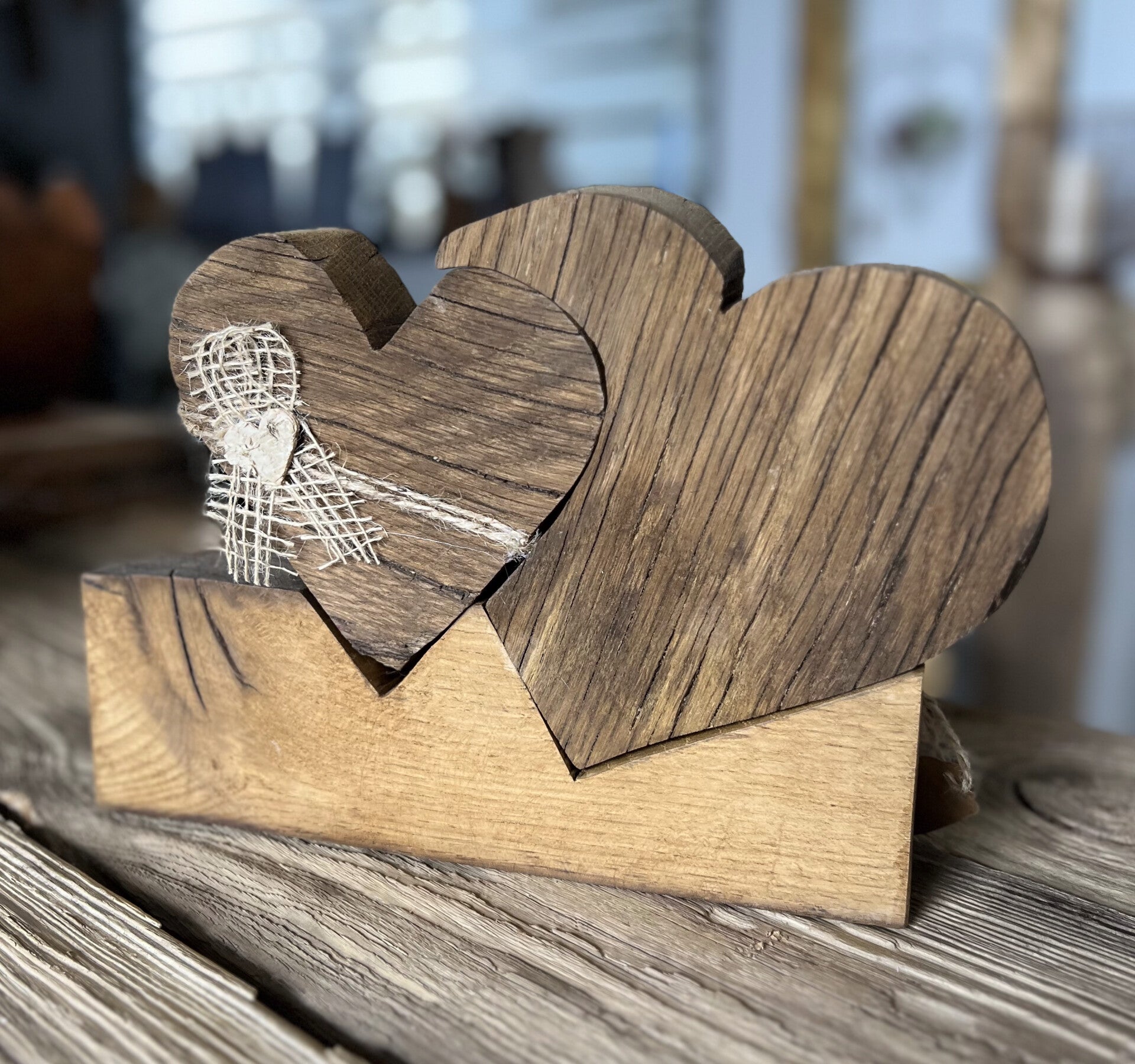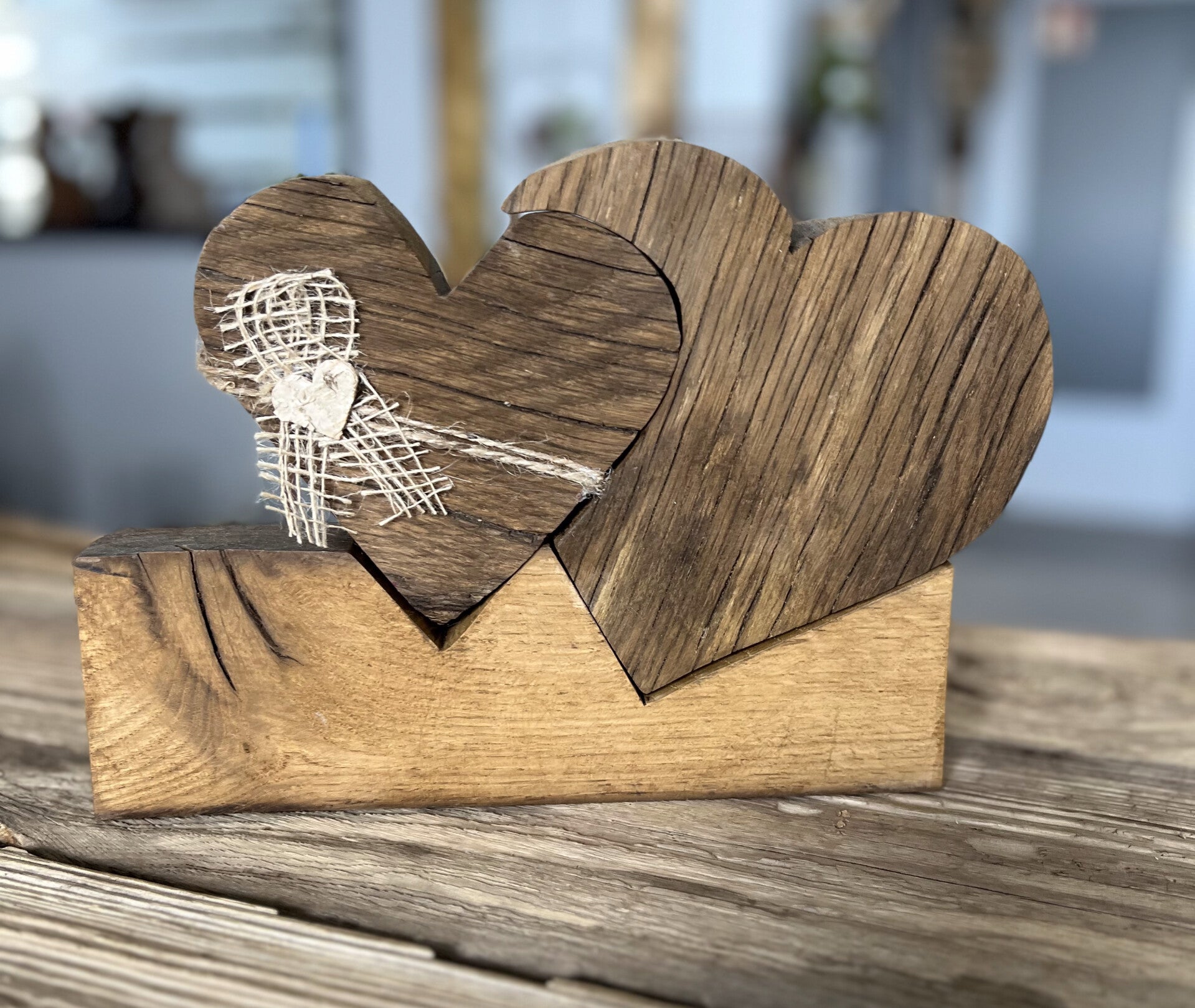 Ein super schönes und individuelles Geschenk für einen oder zwei liebe Menschen sind diese zwei wunderschönen Altholzherzen.